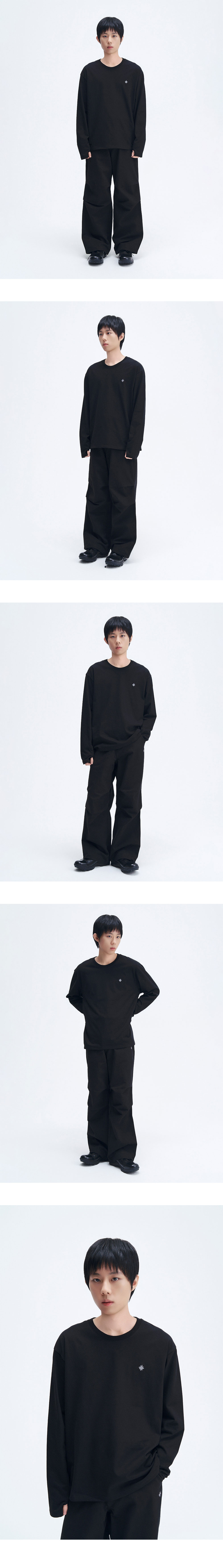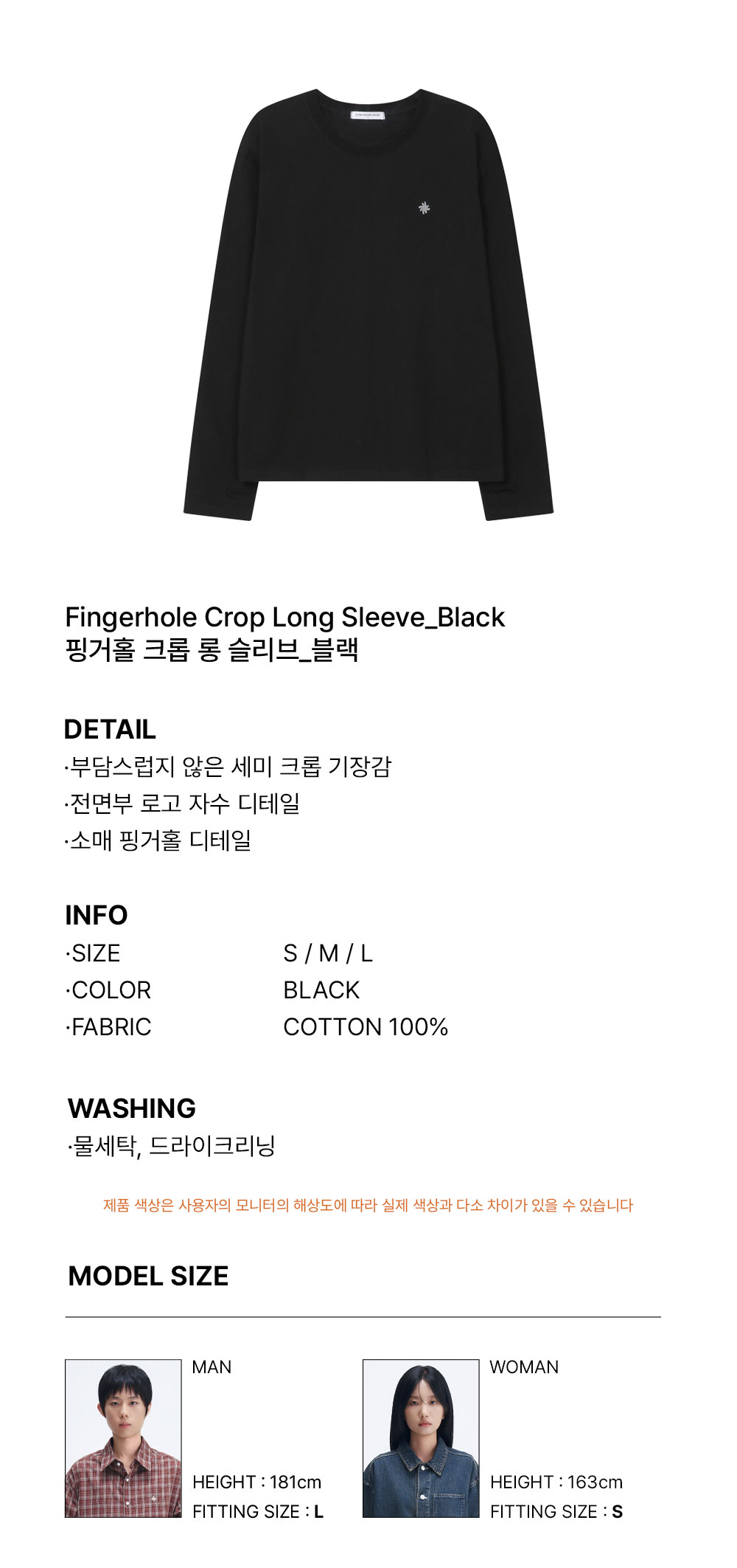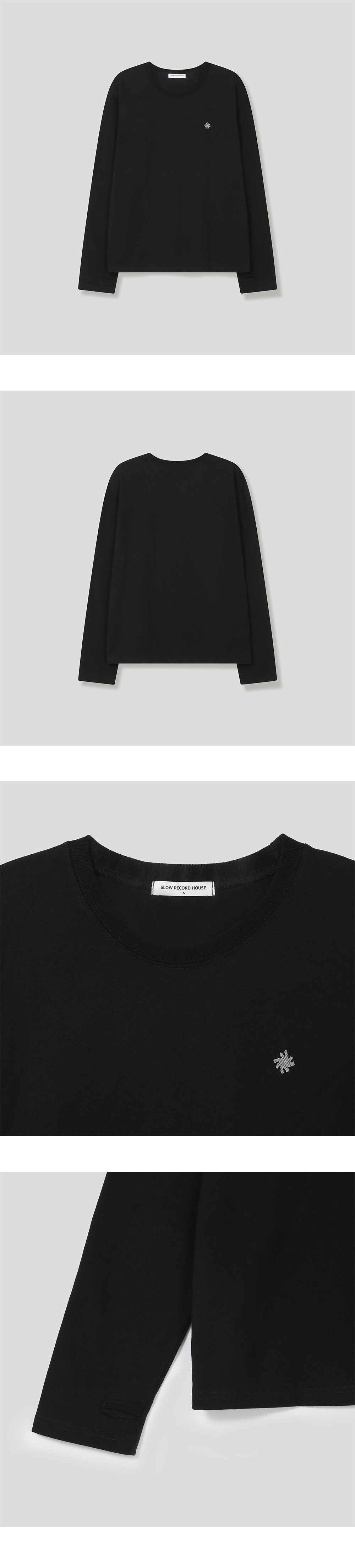 슬로우 레코드 하우스 핑거홀 크롭 롱 슬리브 블랙