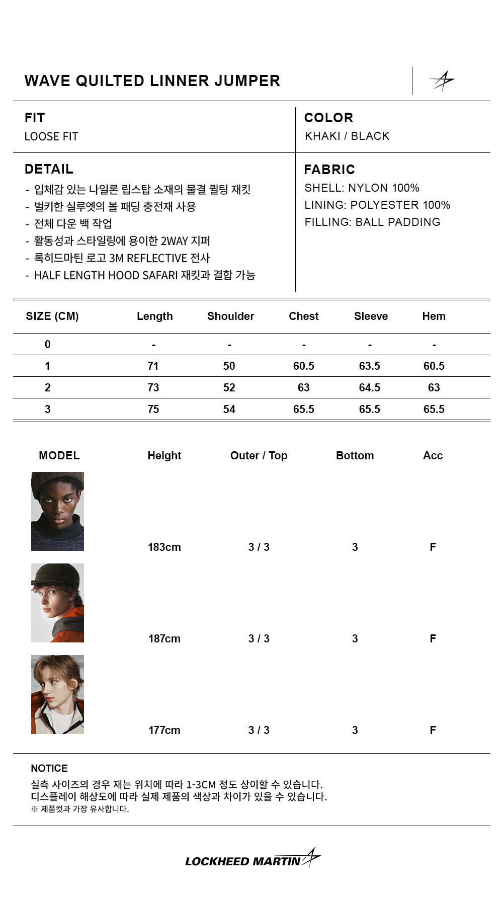 록히드마틴 웨이브 퀼팅 라이너 점퍼 카키