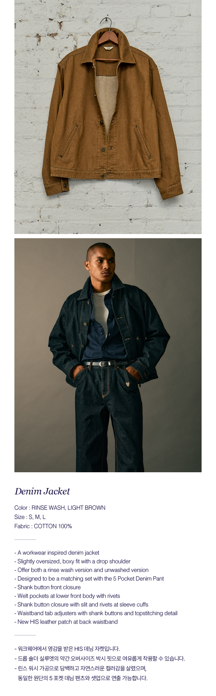 히스헤지스 데님자켓_라이트브라운