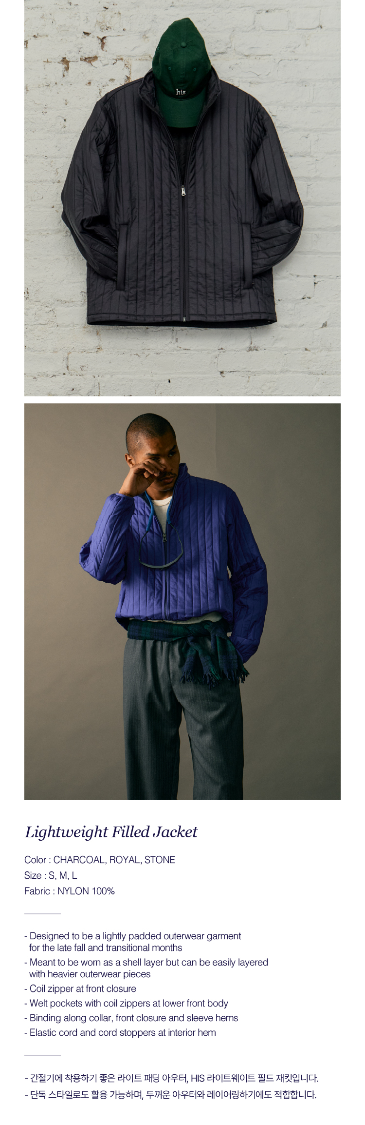 간절기에 착용하기 좋은 경량 패딩 아우터, HIS 라이트 웨이트 필드 재킷입니다. 단독 스타일로도 활용 가능하며, 두꺼운 아우터와 레이어링 하기에도 적합합니다.