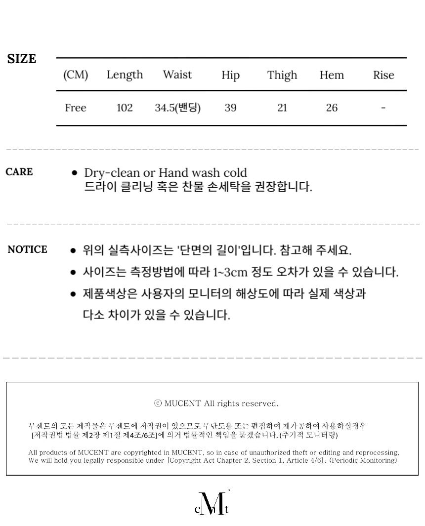 ┃Detail • 전면부 무센트 시그니처 메탈 로고 포인트 • 후면부 무센트 핫픽스 로고 디테일 • 다리가 길어보이는 부츠컷 실루엣 • 허리 밴딩으로 편안한 착용감 • 착용 시 피부에 부드럽게 밀착되는 터치감 • 스타일에 구애받지 않는 데일리한 아이템 ┃Material : Polyester 100% ┃Care : Dry cleaning - 무센트는 말기의 행성인 이 지구에서 지속 가능한 옷들을 고민합니다. 우리는 신념을 소비하는 미닝아웃을 지지합니다.