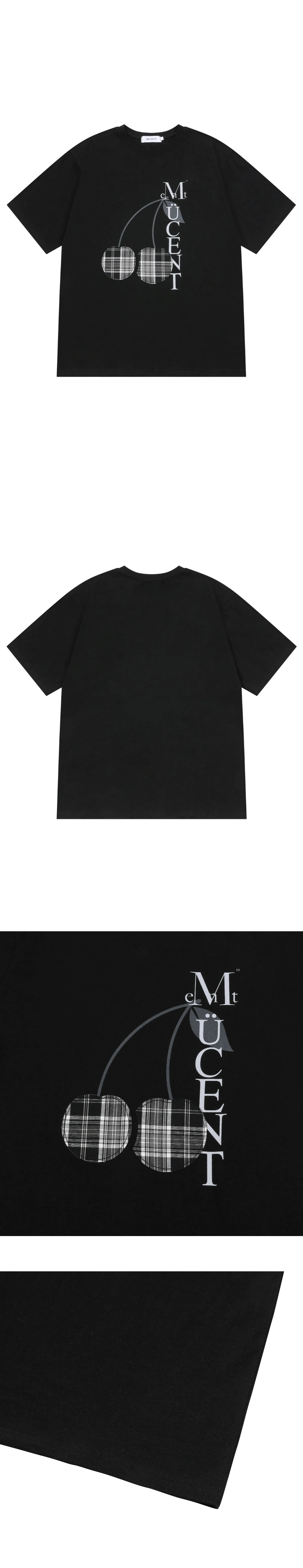 MUCENT Blendy Check Cherry Patch R-Neck Half T Unisex Black