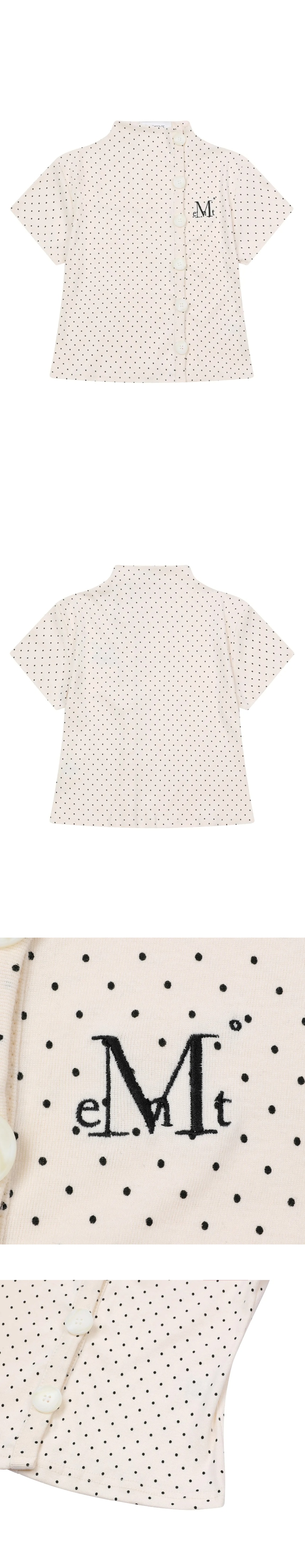 ┃Detail • 전면부 무센트 시그니처 로고 자수 포인트 • 미니 도트 패턴 디자인으로 클래식한 무드 • 전면 사이드에 위치한 단추 디테일로 유니크한 포인트 • 부담스럽지 않은 세미 크롭 기장감 • 목을 살짝 감싸주는 세미 하이넥 디자인 • 부드러운 촉감의 원단으로 편안한 착용감 ┃Material : Cotton 100% ┃Care : Dry cleaning - 무센트는 말기의 행성인 이 지구에서 지속 가능한 옷들을 고민합니다. 우리는 신념을 소비하는 미닝아웃을 지지합니다.