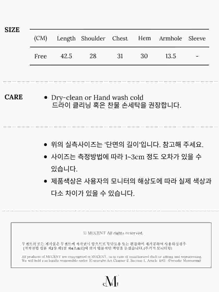 ┃Detail • 전면부 시그니처 크랙 로고 포인트 • 부유방 커버 디자인으로 체형 보완 • 단품 착용시에도 부담없는 넥라인, 암홀라인 • 부드럽게 밀착되는 터치감 • 라운드한 밑단 쉐입으로 슬림한 라인 연출 • 단품, 이너 각각의 활용도가 높은 데일리 아이템 ┃Material : Cotton 100% ┃Care : Dry cleaning - 무센트는 말기의 행성인 이 지구에서 지속 가능한 옷들을 고민합니다. 우리는 신념을 소비하는 미닝아웃을 지지합니다.