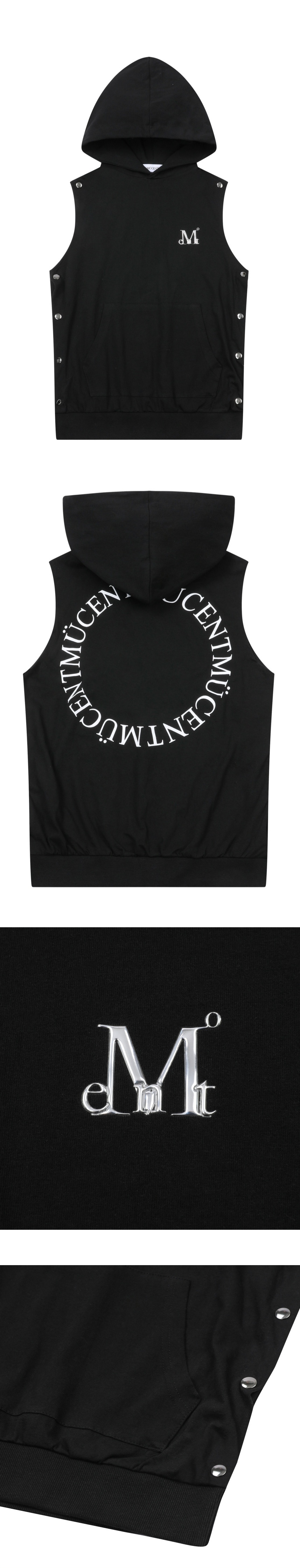 MUCENT Dr Metal Logo Back Round Side Snap Hood Sleeveless Black