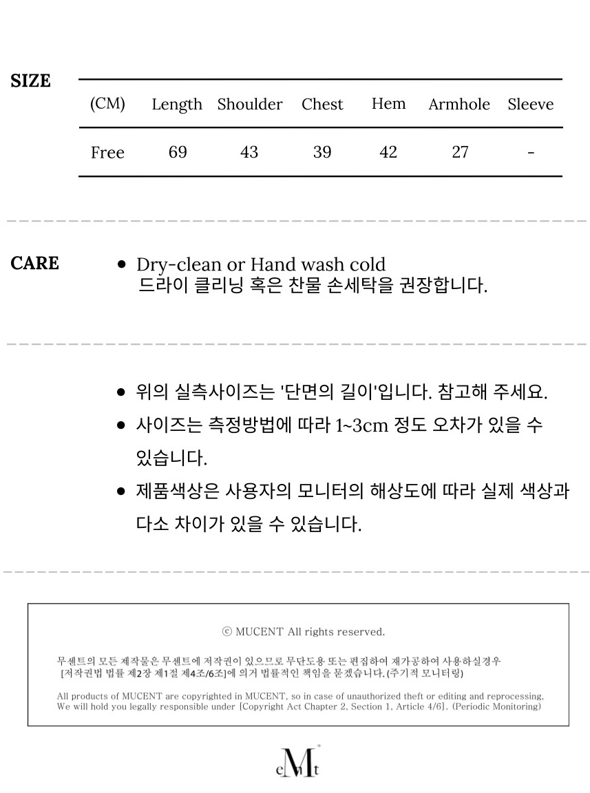 측정 방법에 따라 사이즈에 일부 오차가 있을 수 있습니다.