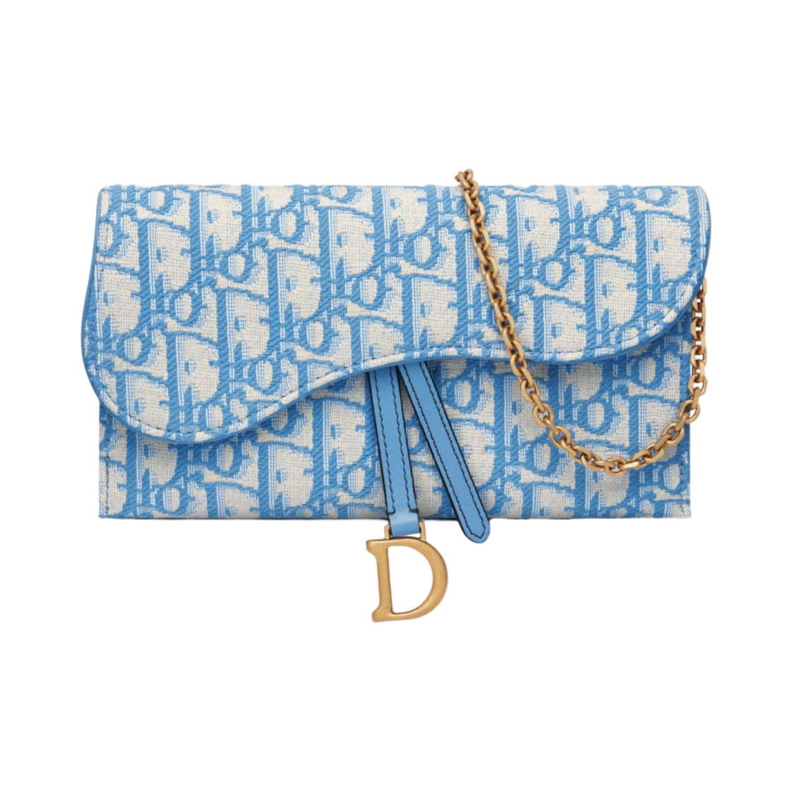Dior Saddle Wallet Cornflower Blue Dior Oblique Jacquard