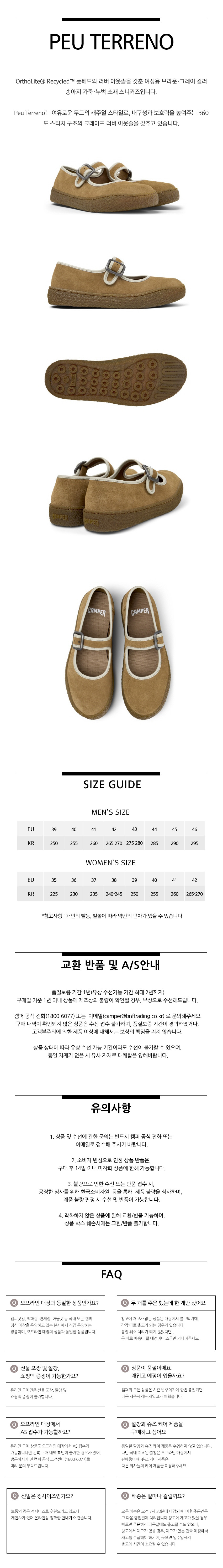 캠퍼 여성 페우 떼레노 플랫슈즈 브라운