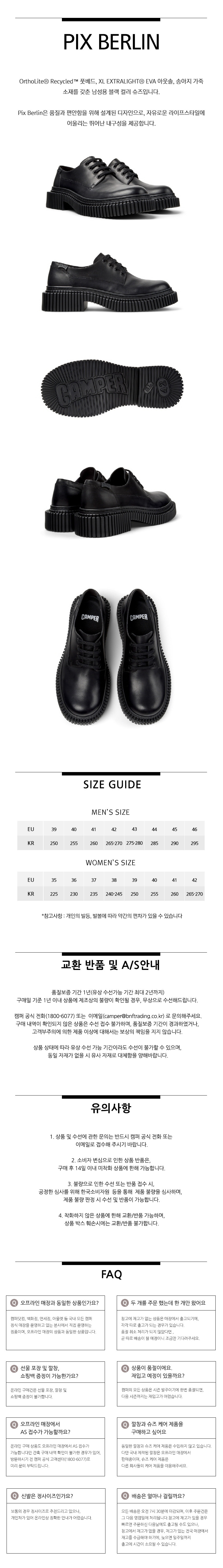 캠퍼 남성 픽스 베를린 정장화 블랙
