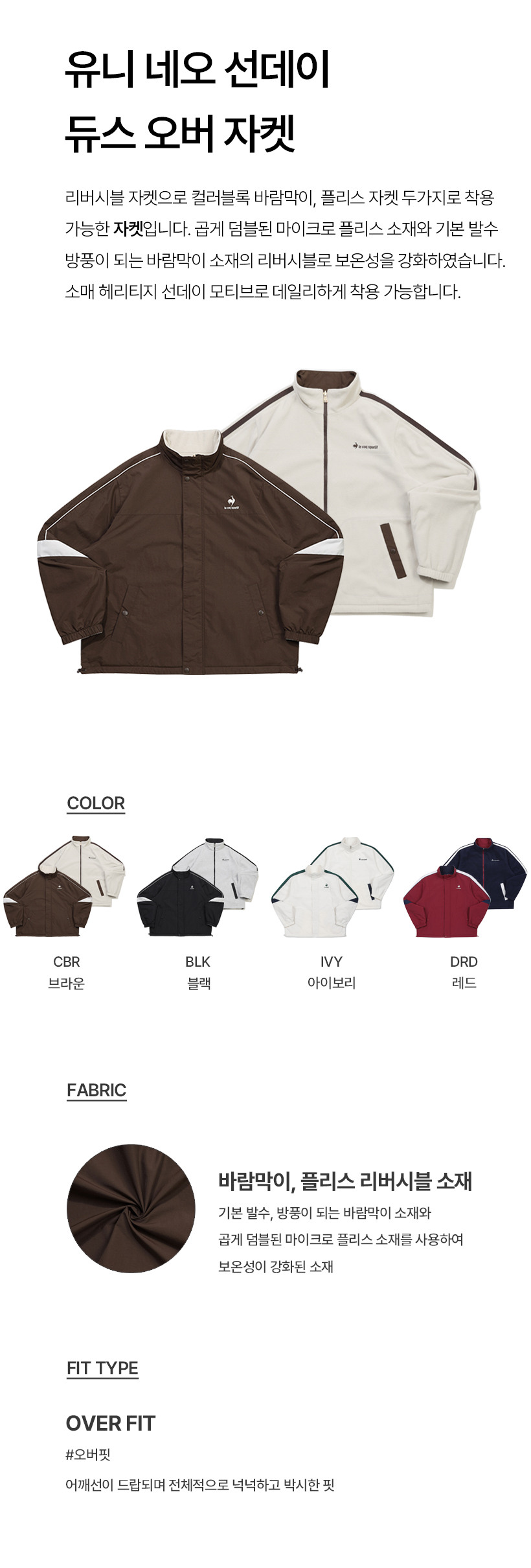 르꼬끄 스포르티브 온라인전용 유니 네오 선데이 듀스 오버 자켓 - 브라운 (QQ323JJK91)