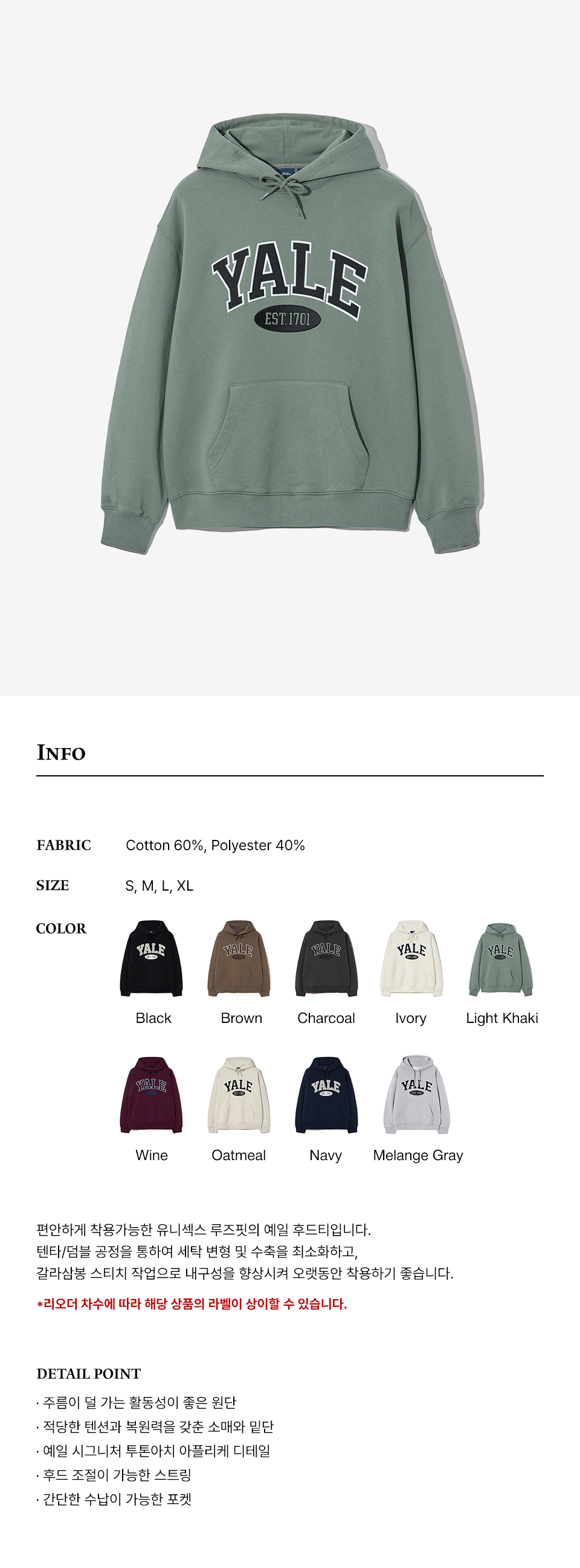 예일 투톤아치 후드_라이트 카키