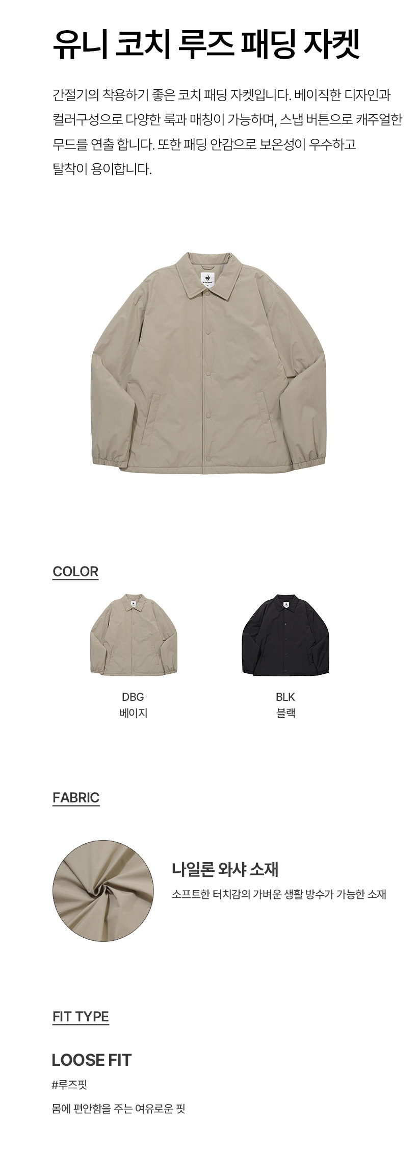 르꼬끄 스포르티브 온라인전용 유니 코치 루즈 패딩 자켓 - 블랙(QQ423JPDO4)