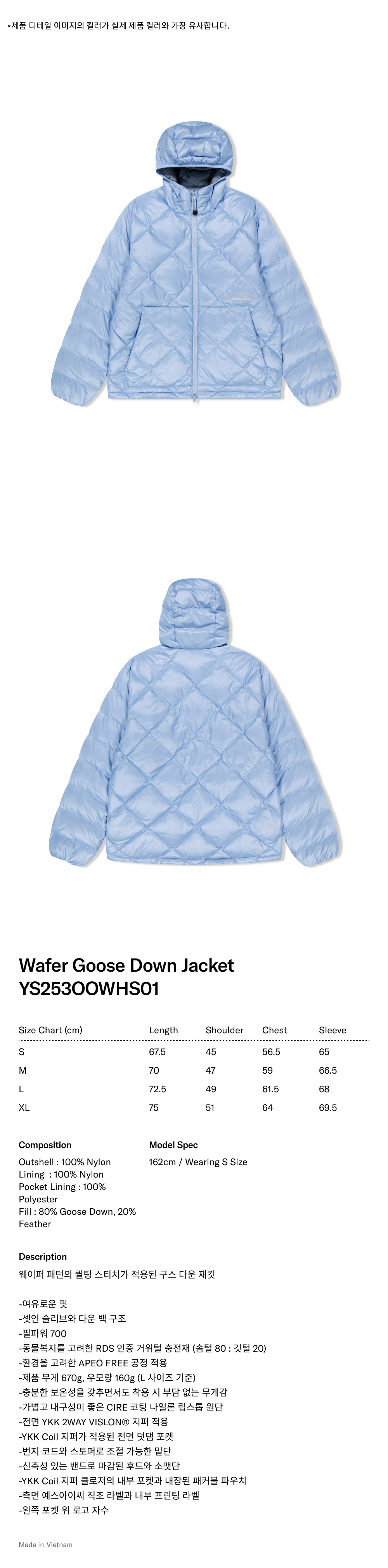 예스아이씨 웨이퍼 구스 다운 재킷 미스티 블루