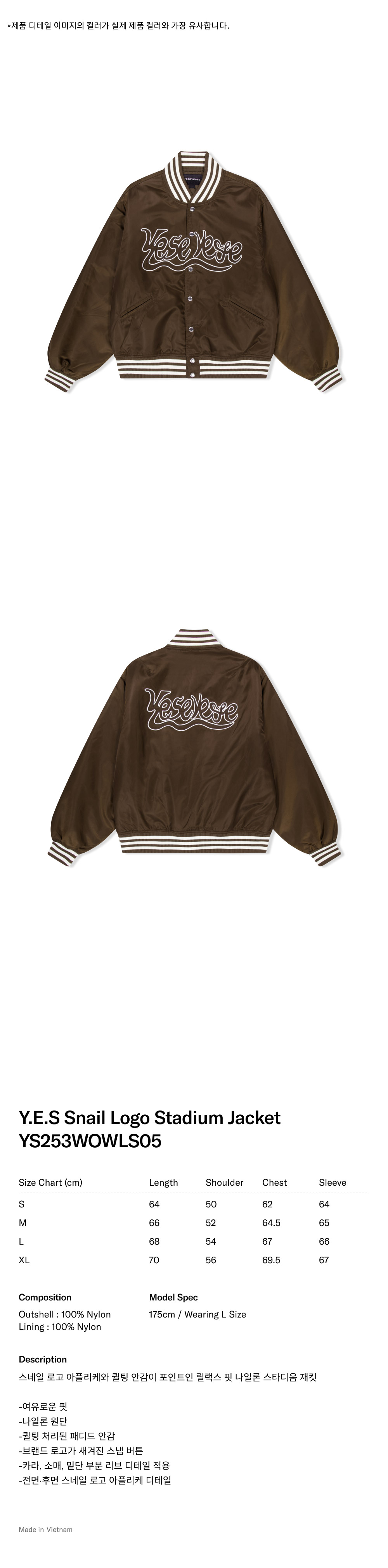 예스아이씨 예스 스네일 로고 스타디움 재킷 브라운
