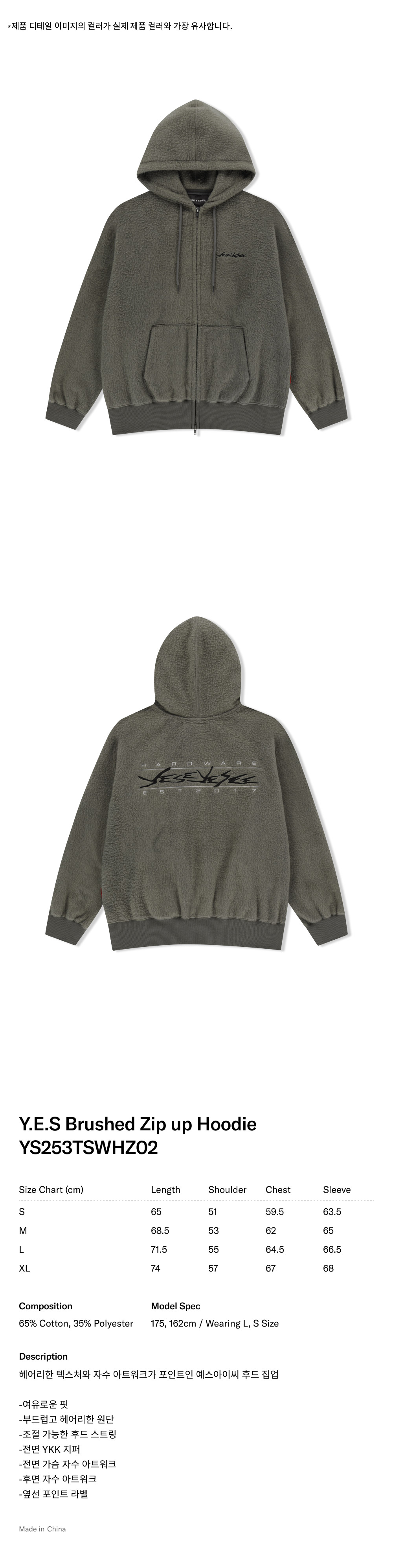 예스아이씨 예스 브러시드 집업 후디 카키
