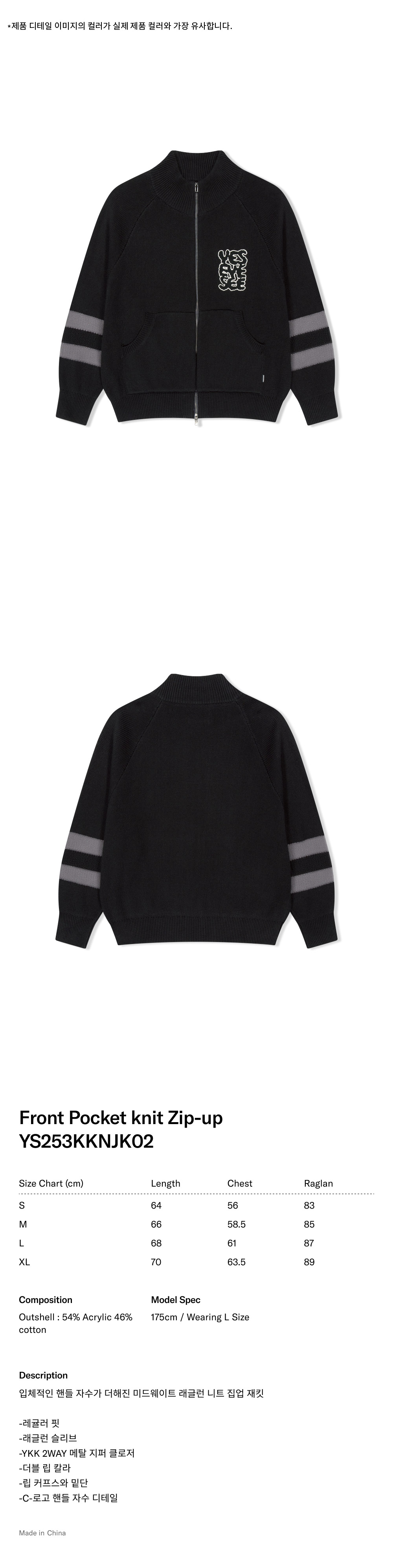 예스아이씨 프론트 포켓 니트 집업 블랙