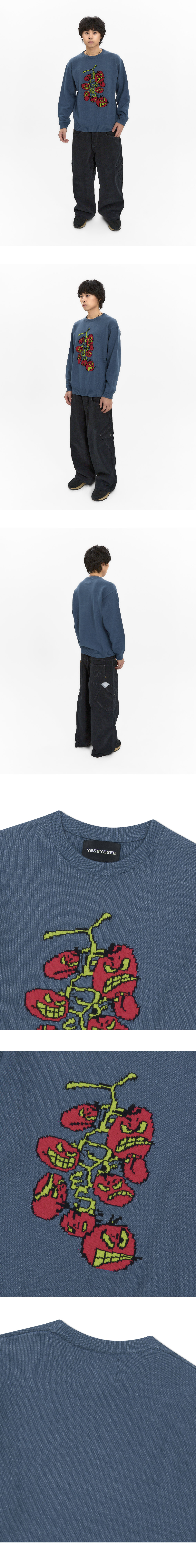 YESEYESEE Cherry Tomatoes Graphic Knit Pullover Navy