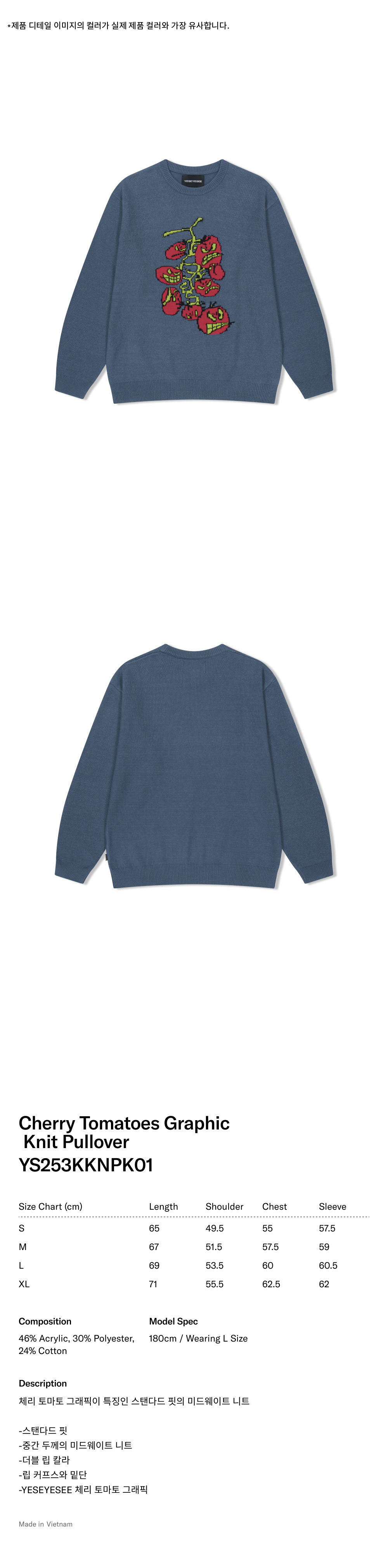 예스아이씨 체리 토마토 그래픽 니트 풀오버 네이비