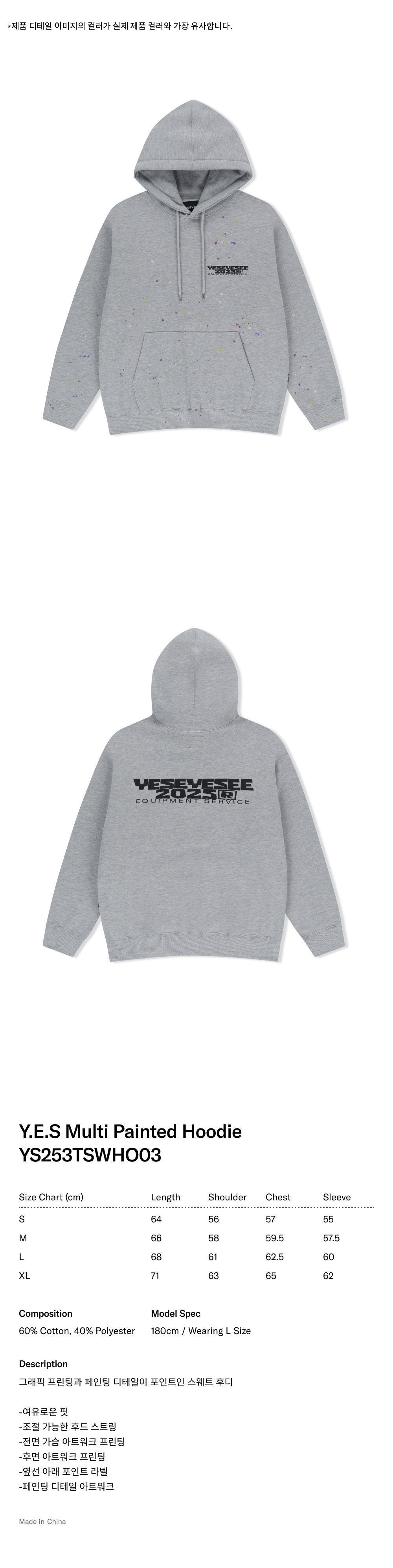 예스아이씨 예스 멀티 페인티드 후디 그레이