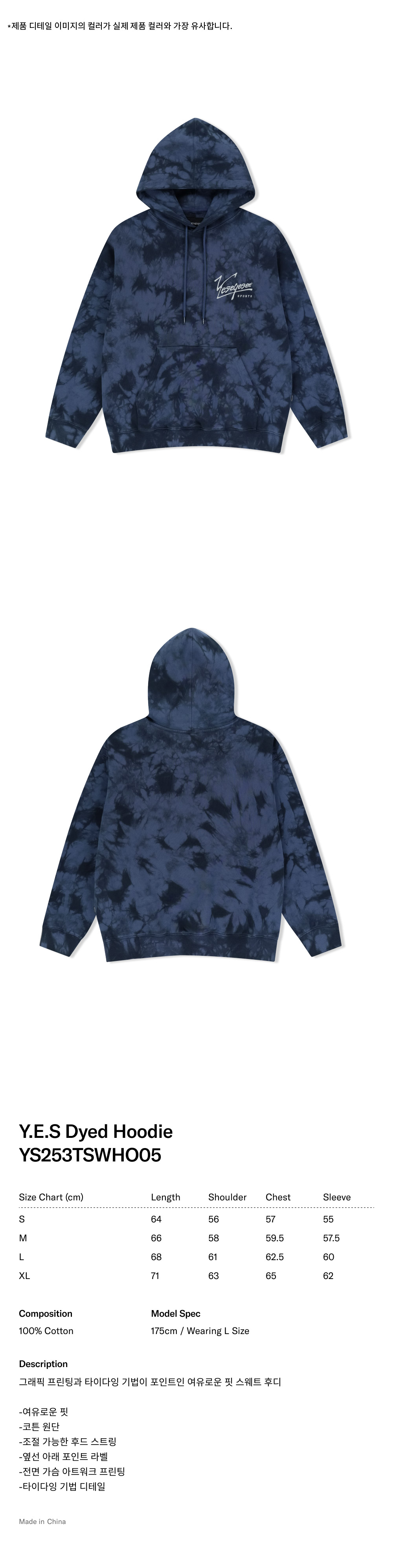 예스아이씨 예스 다이드 후디 차콜