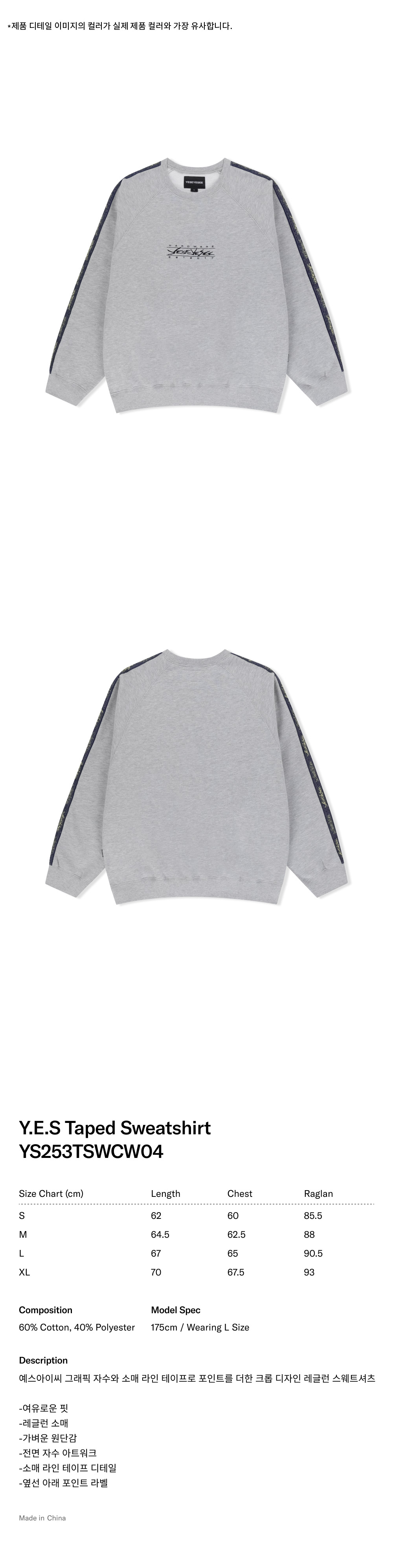 예스아이씨 예스 테이퍼드 스웨트셔츠 그레이