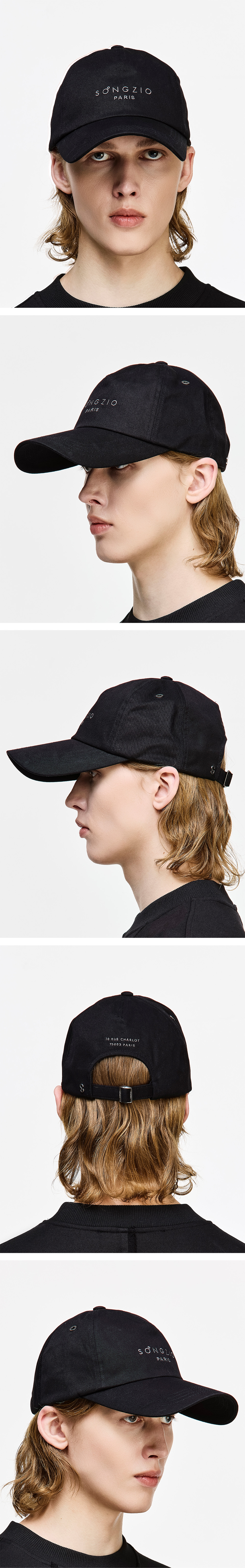 - SONGZIO HOMME 오리진 파리 볼캡 - 내추럴한 터치감의 코튼 패브릭 - 전, 후면에 위치한 SONGZIO ORIGIN PARIS 엠브로이드 - 옆면 SONGZIO 로고 아일렛 포인트 디테일 - 후면 SONGZIO HOMME 엠블럼 금속 장식 디테일 - 후면 S로고 스트랩 버클 FABRICATION MADE IN KOREA
