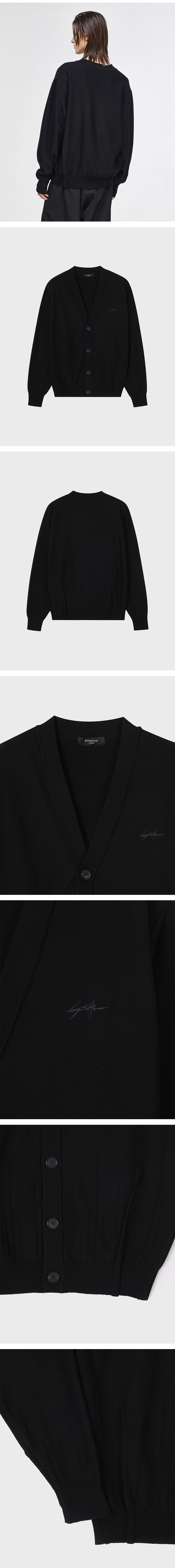 - SONGZIO HOMME 엣지 폴드 포버튼 가디건 - 광택감 있는 울 비스코스 원사 - 12GG도톰한 시그니처 다트 조직 - 전면 'SONGZIO HOMME AUTOGRAPH' 자수 - 전면 후면 엣지 폴드 디테일 - 세미 오버사이즈 실루엣 FABRICATION MADE IN KOREA