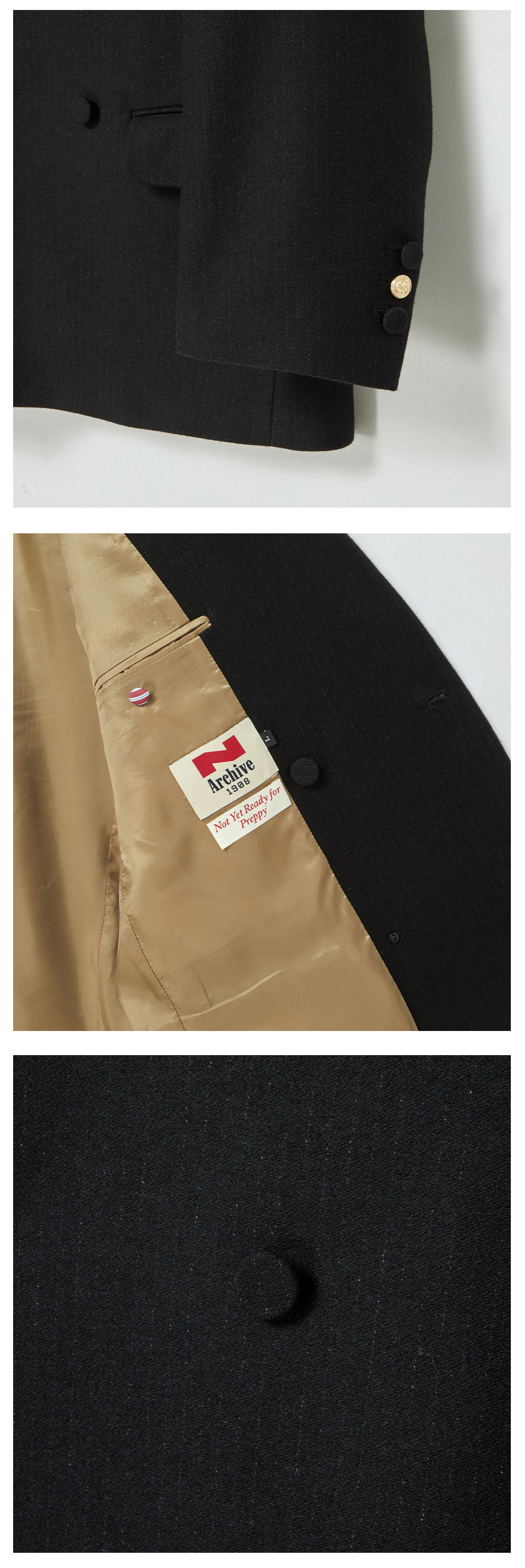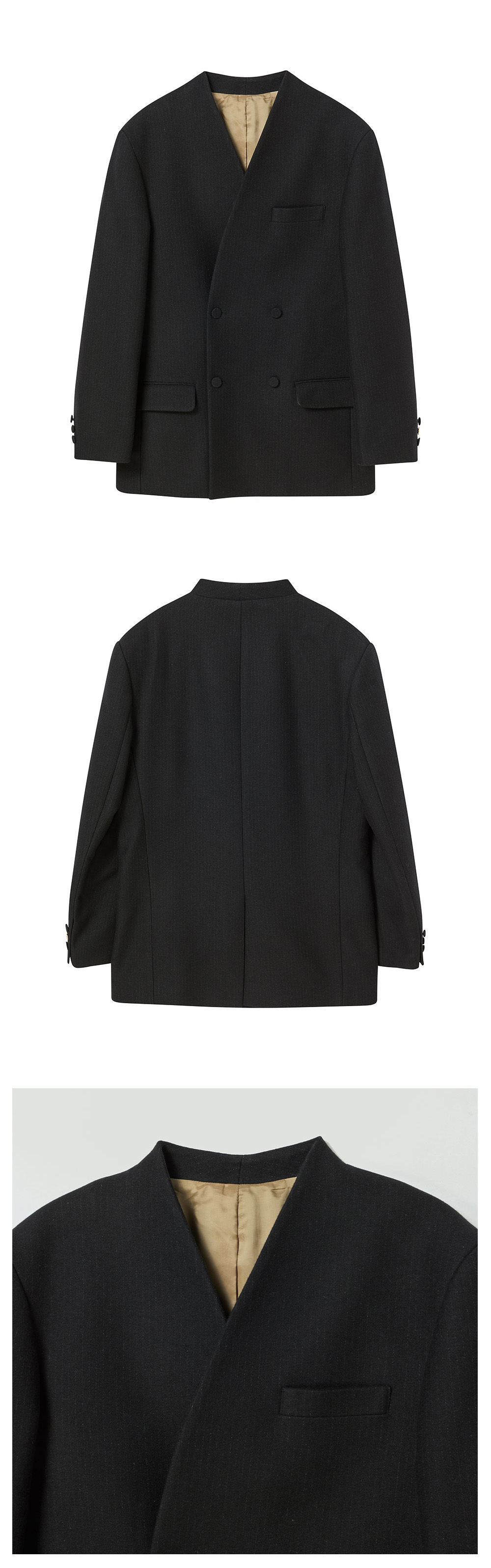 ㆍ한정 수량으로 제작된 컬렉션 라인의 테일러드 더블 자켓 ㆍ고퀄리티의 울 원단으로 보온성이 뛰어나고 고급스러우며 클래식한 터치감 선사 ㆍ블랙 컬러의 베이스에 은은한 스트라이프 컬러가 더해져 클래식한 요소를 더함 ㆍ카라 리스 디테일로 유니크한 요소 ㆍ스탠다드 핏으로 자연스러운 실루엣 연출 ㆍ원단으로 제작한 싸개단추와 소매의 포인트 버튼, 배색 안감 등의 디자이너의 감성 디테일 ㆍ유니섹스 상품으로 제작