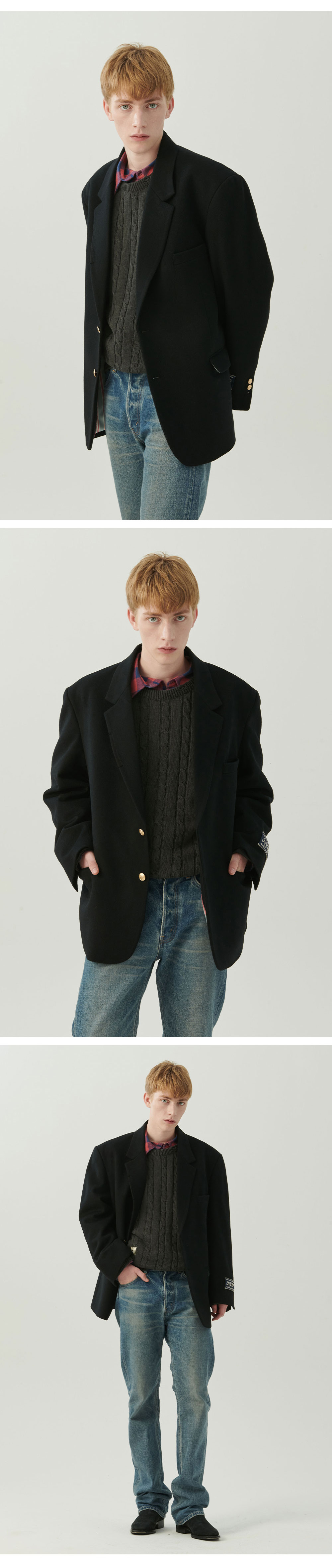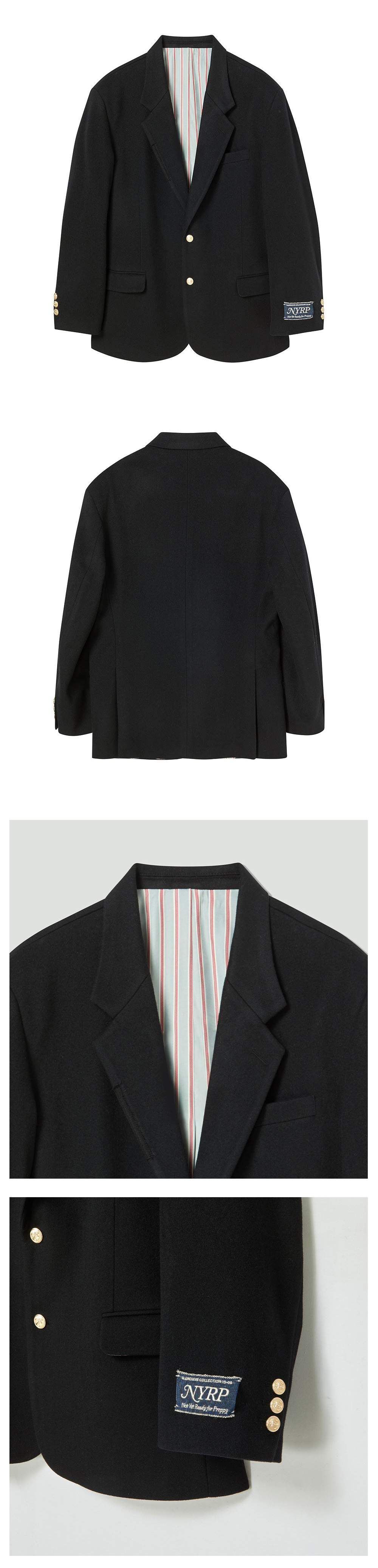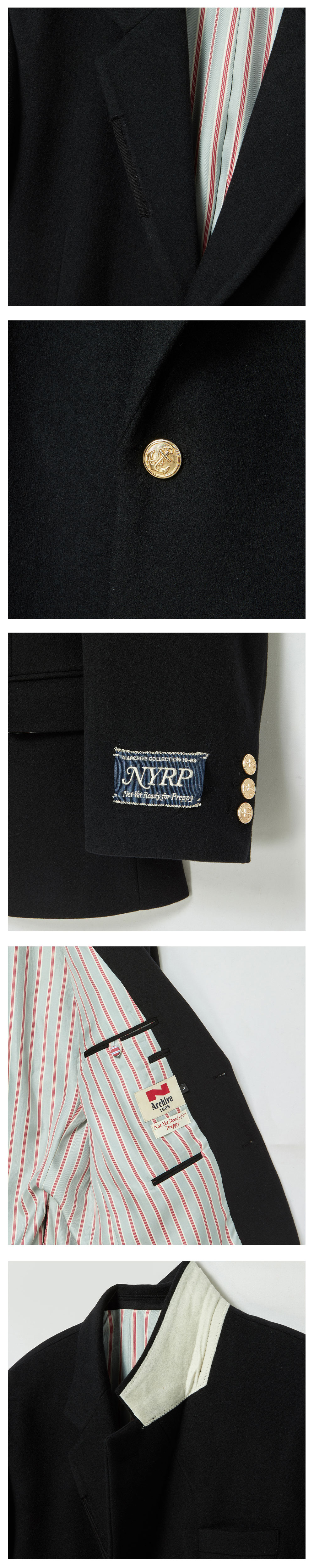 ㆍ한정 수량으로 제작된 컬렉션 라인의 테일러드 캐시미어 자켓 ㆍ고퀄리티의 캐시미어와 울 혼방 원단으로 보온성이 뛰어나고 고급스러우며 클래식한 터치감 선사 ㆍ블랙 컬러의 베이스에 프레피한 스트라이프 안감 배색으로 클래식한 요소위에 유니함을 더함 ㆍ오리지널 무드의 고퀄리티의 골드 버튼 ㆍ스탠다드 핏으로 자연스러운 실루엣 연출 ㆍ소매 부분의 프레피 테이프 덧댐, 안감의 슬로건 라벨, 등 유니크한 디테일 포인트 ㆍ소매 부분의 프레피 테이프는 기호에 맞게 뗄 수 있게 제작 ㆍ유니섹스 상품으로 제작