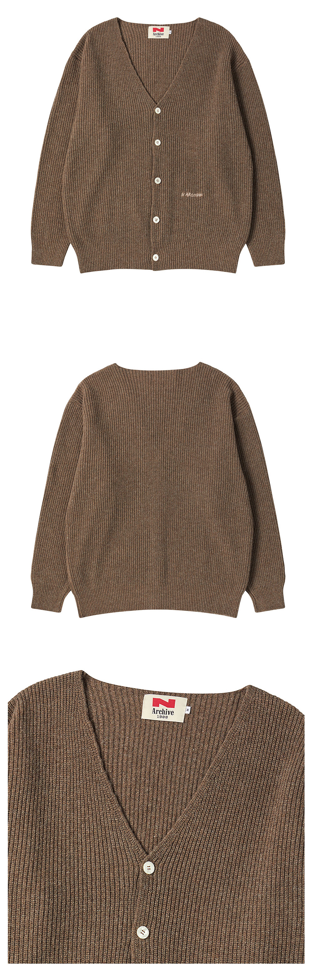엔 아카이브 수퍼 파인 메리노 울 와플 니트 가디건 브라운