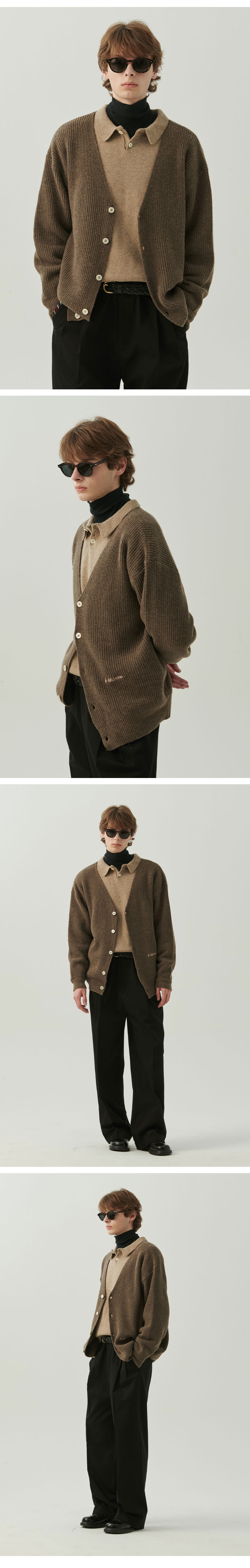 ㆍ한정 수량으로 제작된 컬렉션 라인의 니트 가디건 ㆍ메리노 울과 캐시미어 가공한 나일론을 합성시킨 최고급 원사로 보온성을 올리고 부드러운 터치감 선사 ㆍ클래식한 하찌 짜임으로 고급스러운 무드 ㆍ세미 오버 핏으로 자연스러운 실루엣 연출 ㆍ앞판에 톤 온 톤으로 들어간 로고자수 ㆍ유니섹스 상품으로 제작