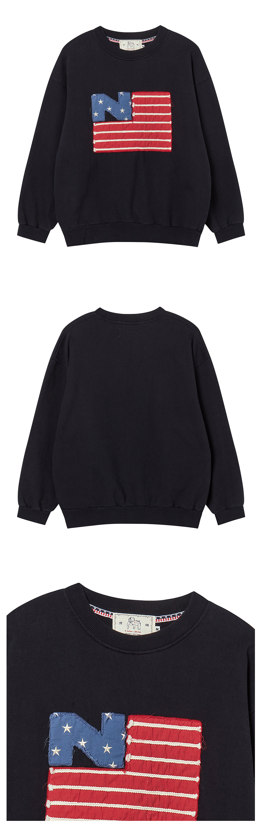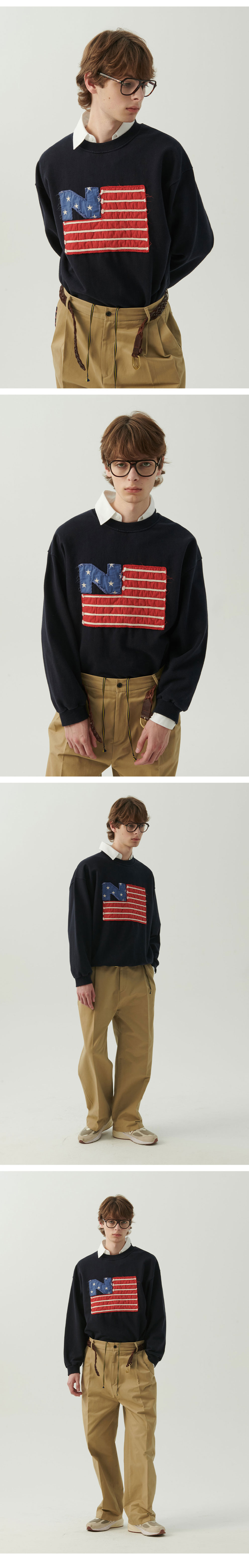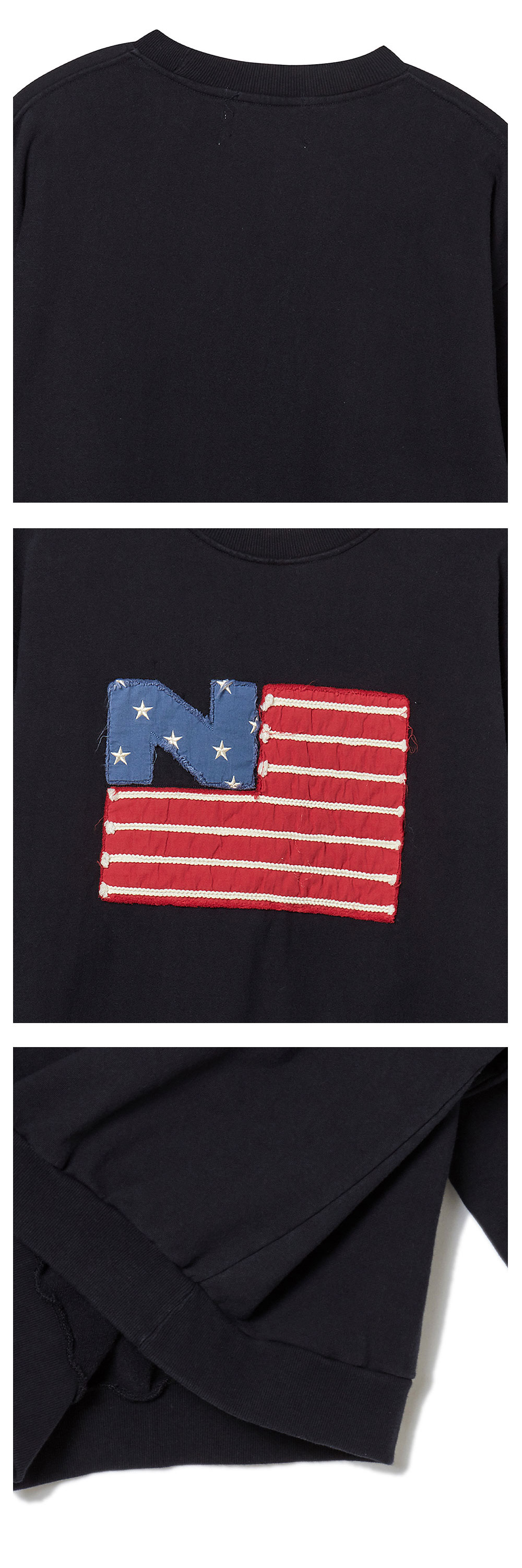 엔 아카이브 올드 글로리 핸드 메이드 패치 디테일 스웨트 셔츠 네이비