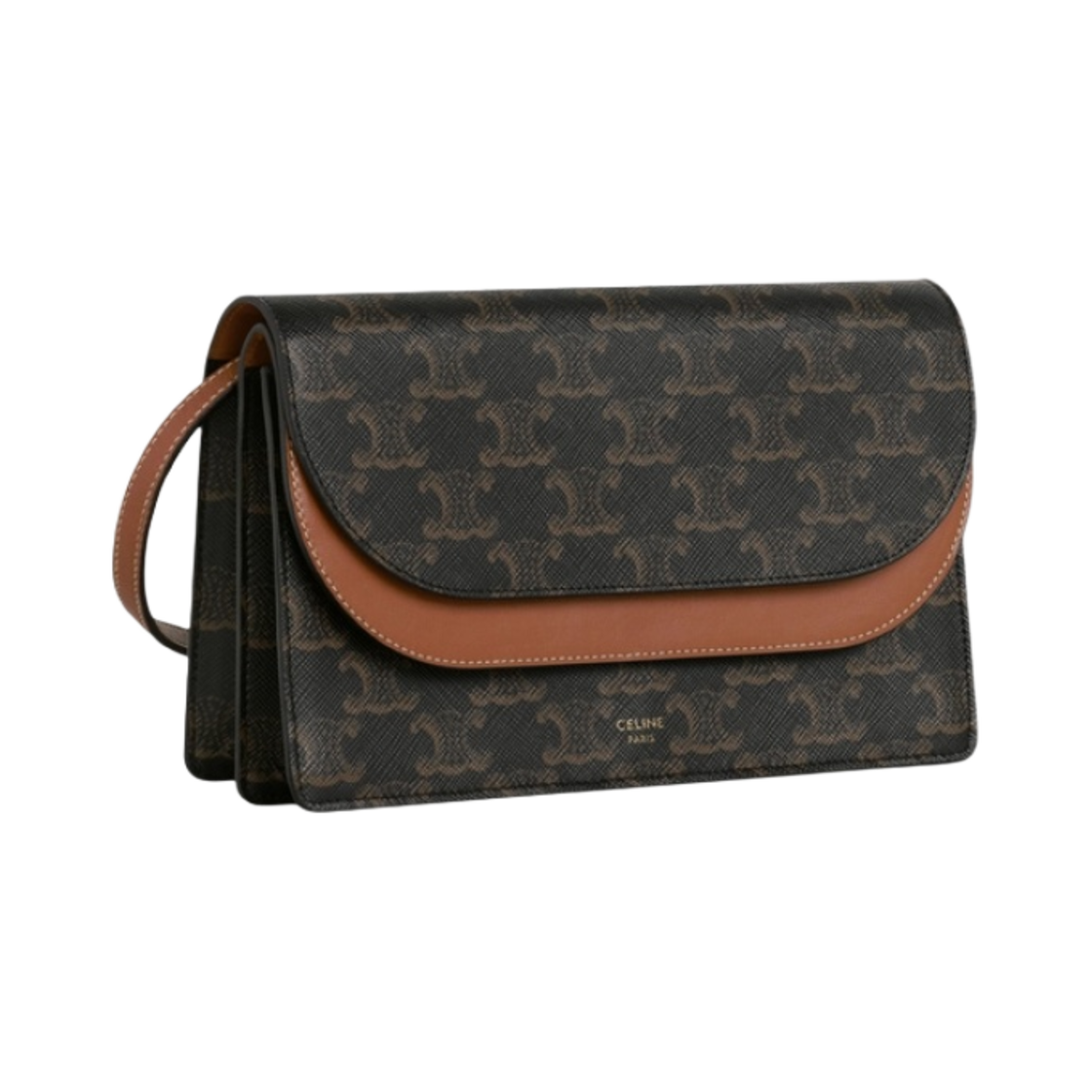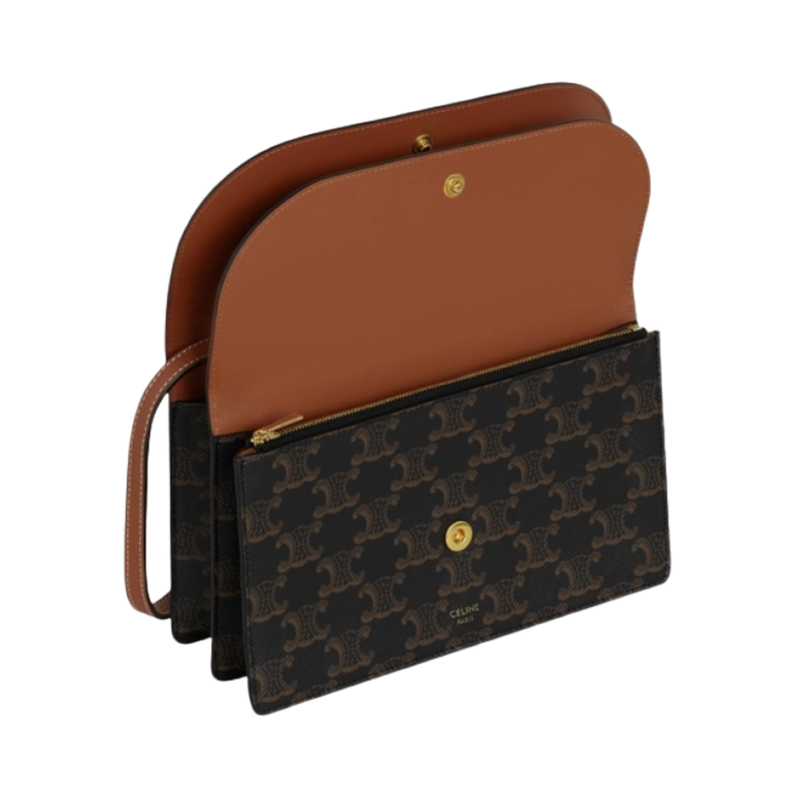 셀린느 트리옹프 캔버스 & 스무스 램스킨 스트랩 월렛 탄