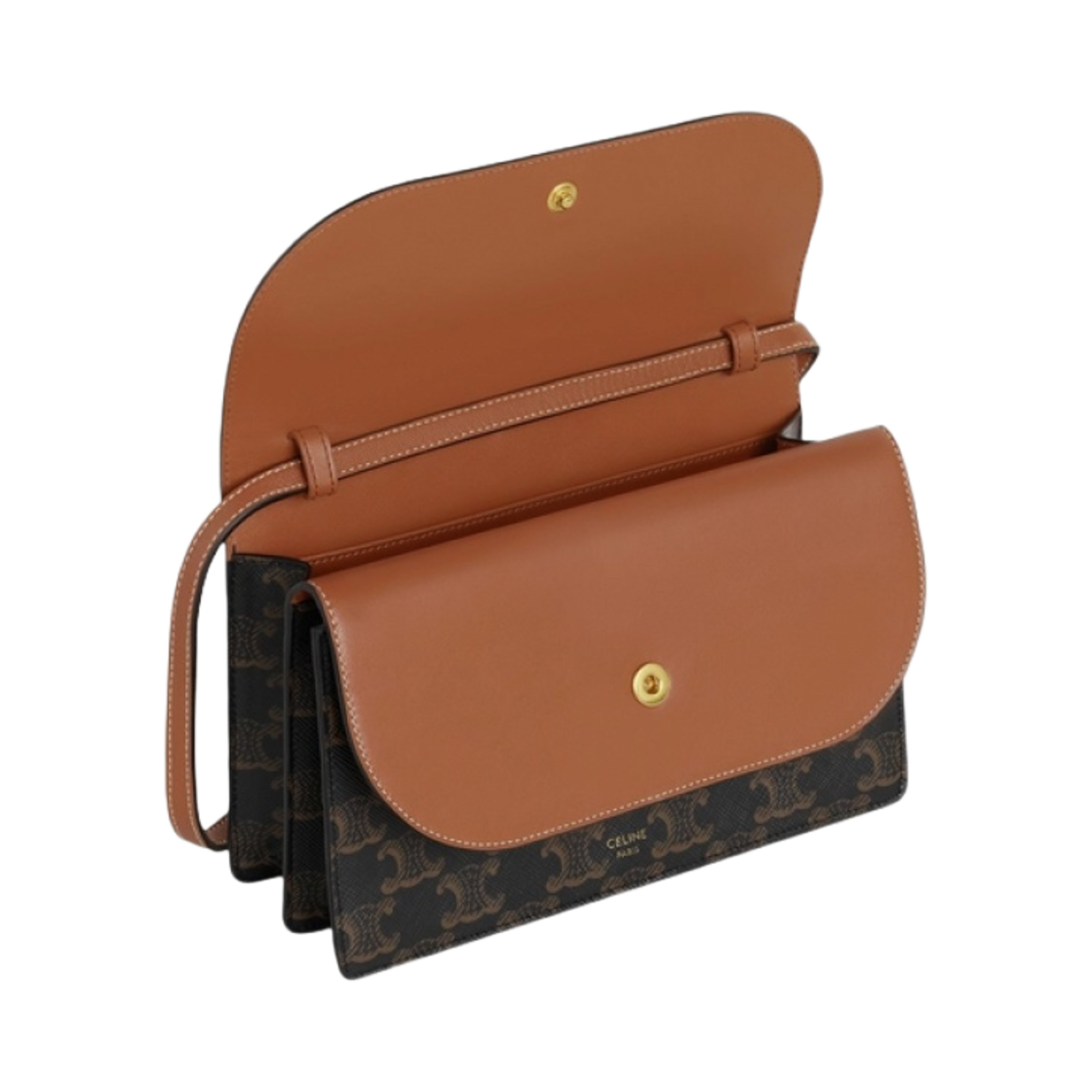 Celine Wallet on Strap in Triomphe Canvas and Smooth Lambskin Tan