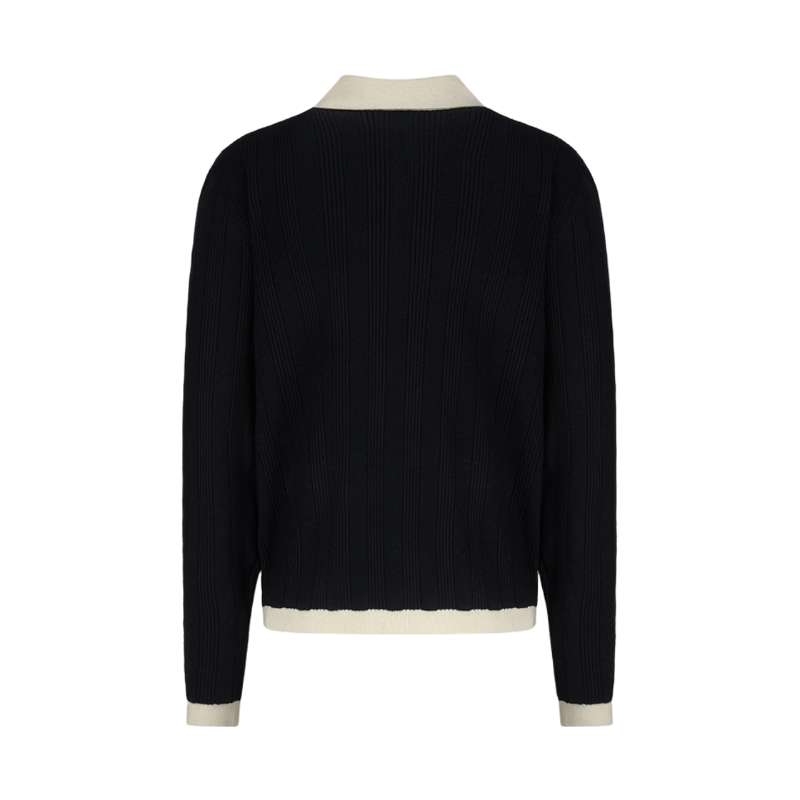 메리노 울 혼방 소재의 배색 가디건 입니다. 레이어링 하기 좋은 두께감과 부드러운 텍스쳐가 특징입니다. 카라, 밑단 포켓 배색과 금속 심볼로 포인트를 더했습니다.