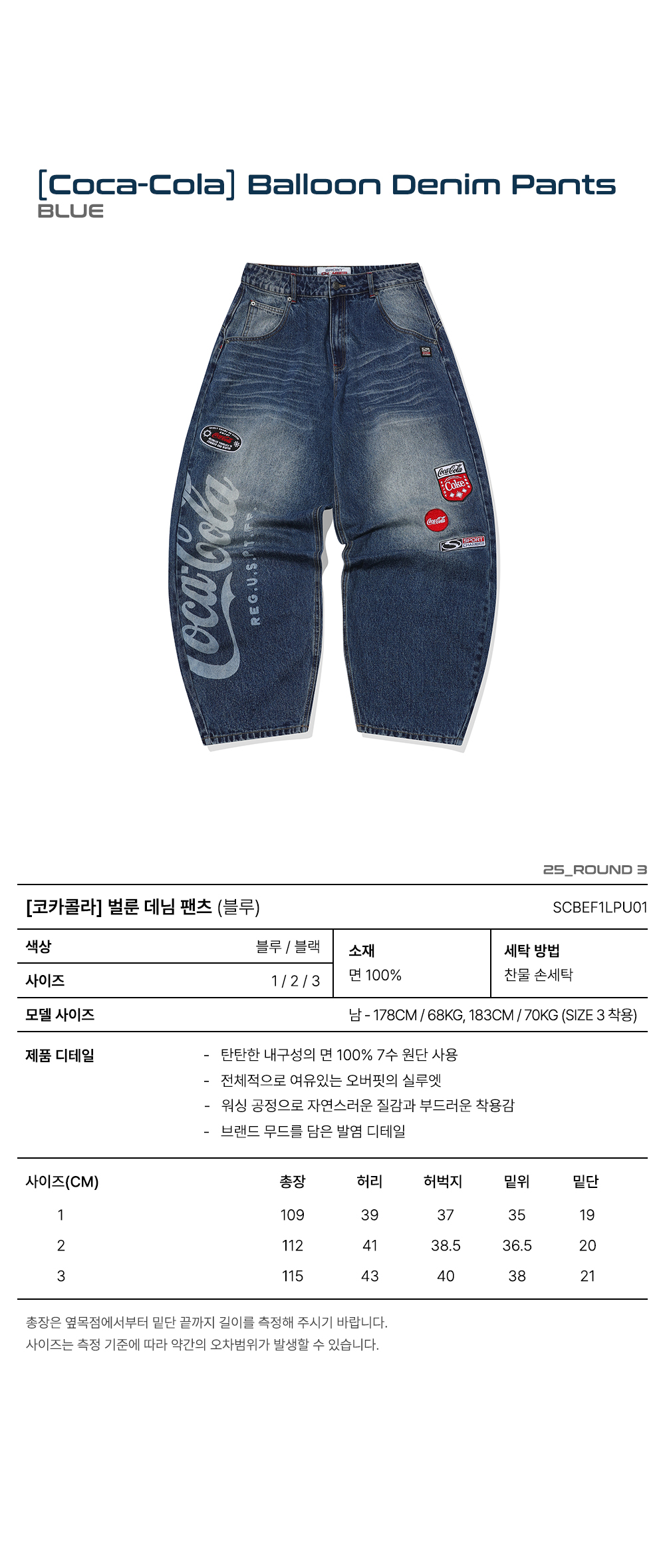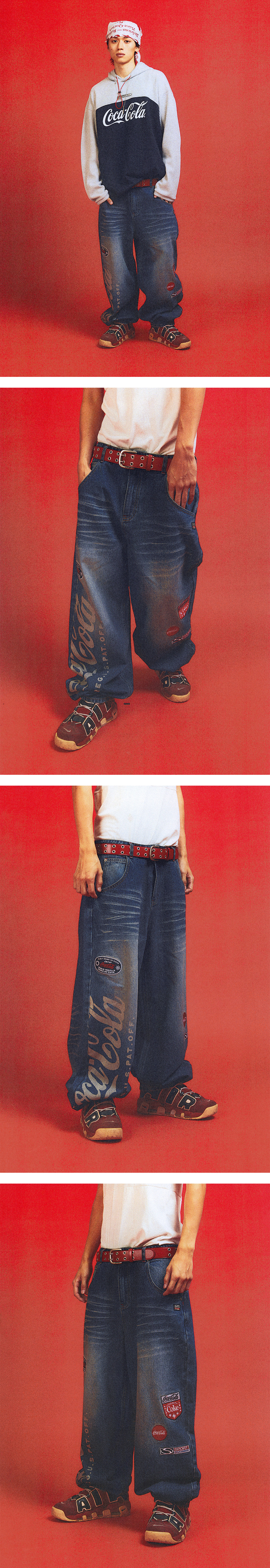 스포츠챔버 x 코카콜라 벌룬 데님 팬츠 블루