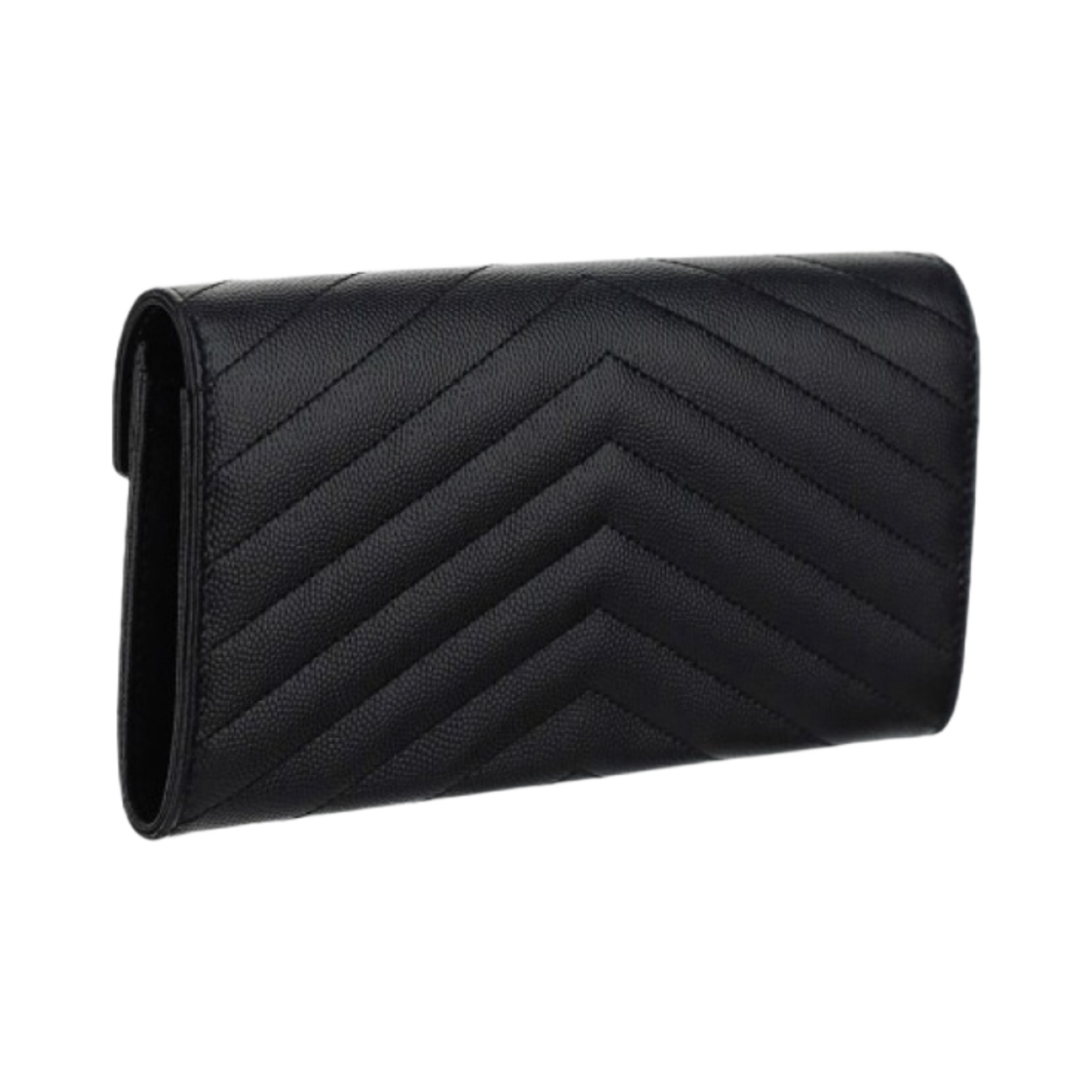 Saint Laurent Cassandre Matelasse Large Flap Wallet in Grain De Poudre Embossed Leather Black