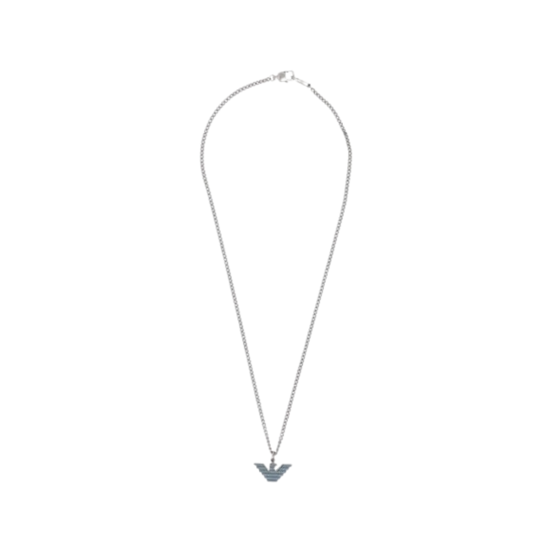Emporio Armani Stainless Steel Logo Pendant Necklace Silver Blue