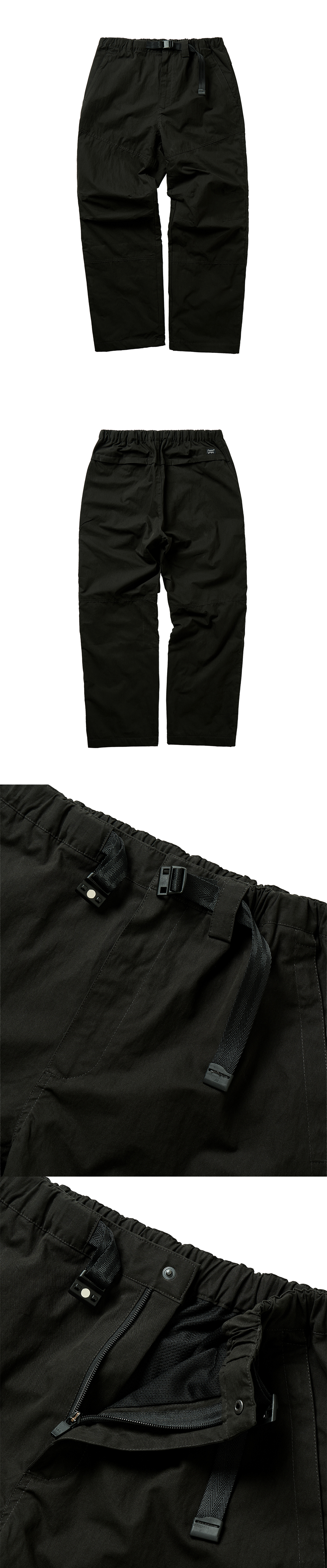 편하게 입을 수 있는 디테일의 요소가 들어있는 와이드 핏 팬츠 벨트가 필요없는 웨빙, 자석 버클 구성과 밴드 형태의 허리 디자인 코튼, 나일론 혼방 소재로 내추럴한 촉감과 높은 내구성 구현 내부 안감을 매쉬로 덧대 편하게 착용 가능 뒷 포켓은 지퍼 형태로 되어 있어 소지품 이탈 방지 용이