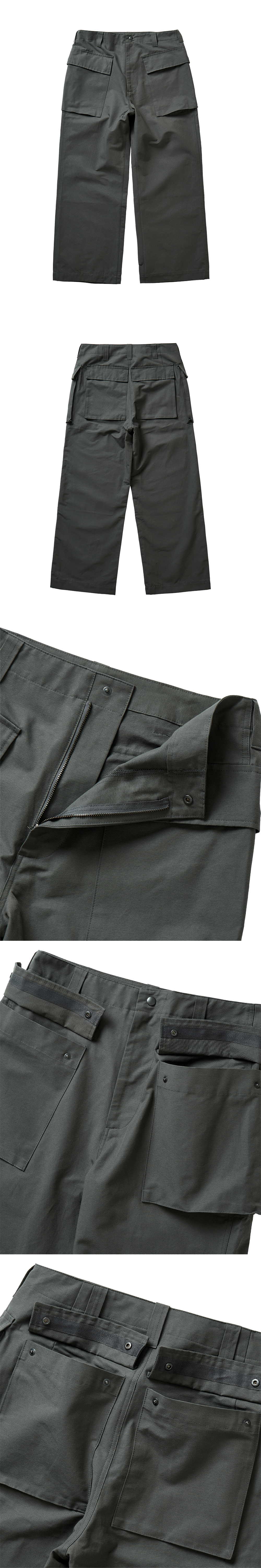 와이드 핏 실루엣 전면 2개 후면 2개의 포켓 배치 양쪽 스냅으로 여닫는 구조의 포켓은 소지품 이탈 방지에 용이 코튼, 나일론 혼방 소재로 내추럴한 촉감과 높은 내구성 구현 YKK 지퍼 사용