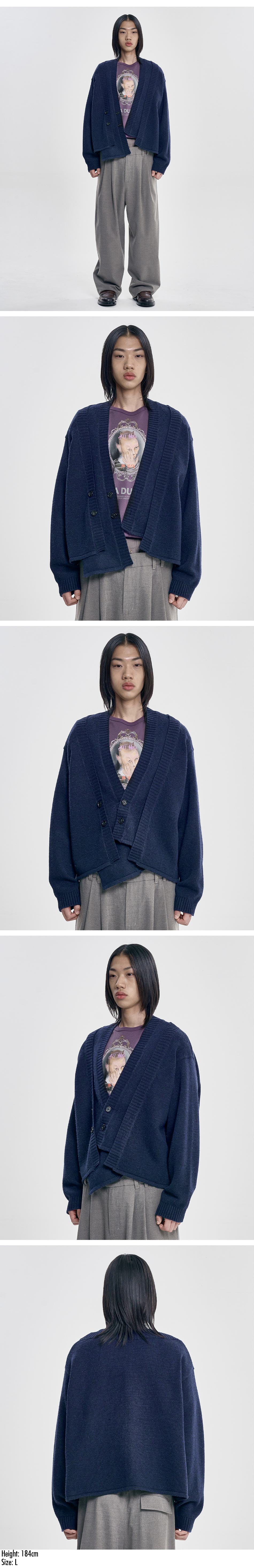 아조바이아조 더블 레이어드 가디건 네이비