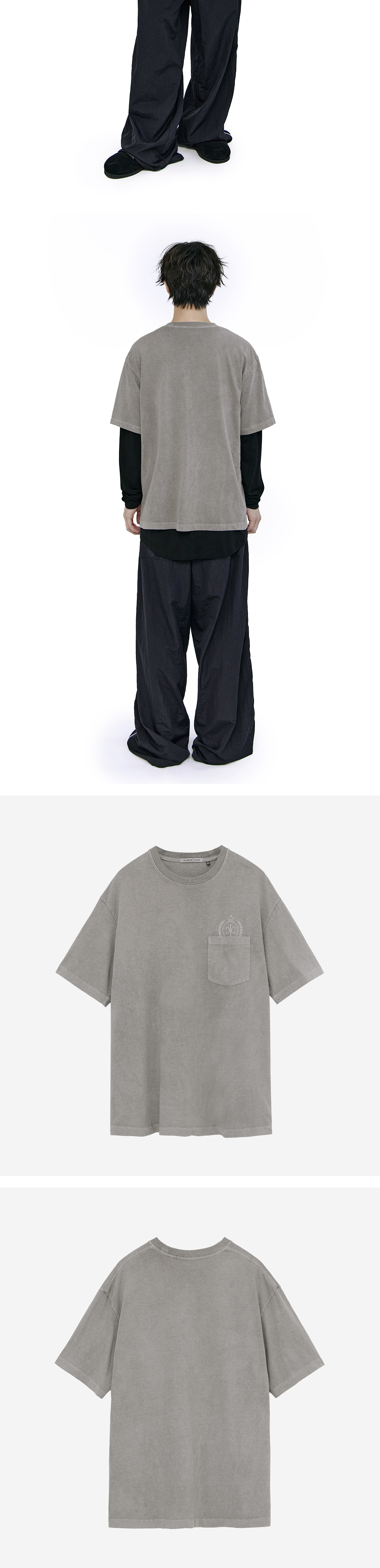 폴리테루 휴먼인덱스 휴먼 포켓 엠블럼 티셔츠 더티 그레이