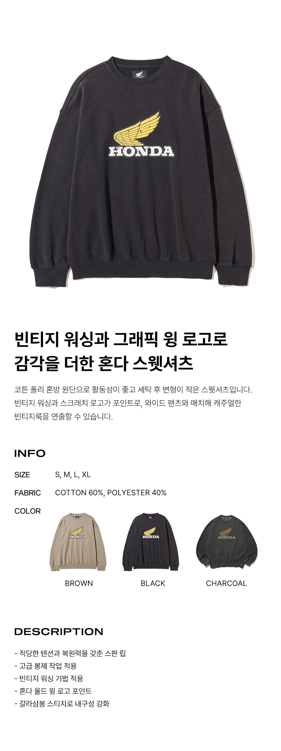 혼다 빈티지 로고 스웨트셔츠 블랙
