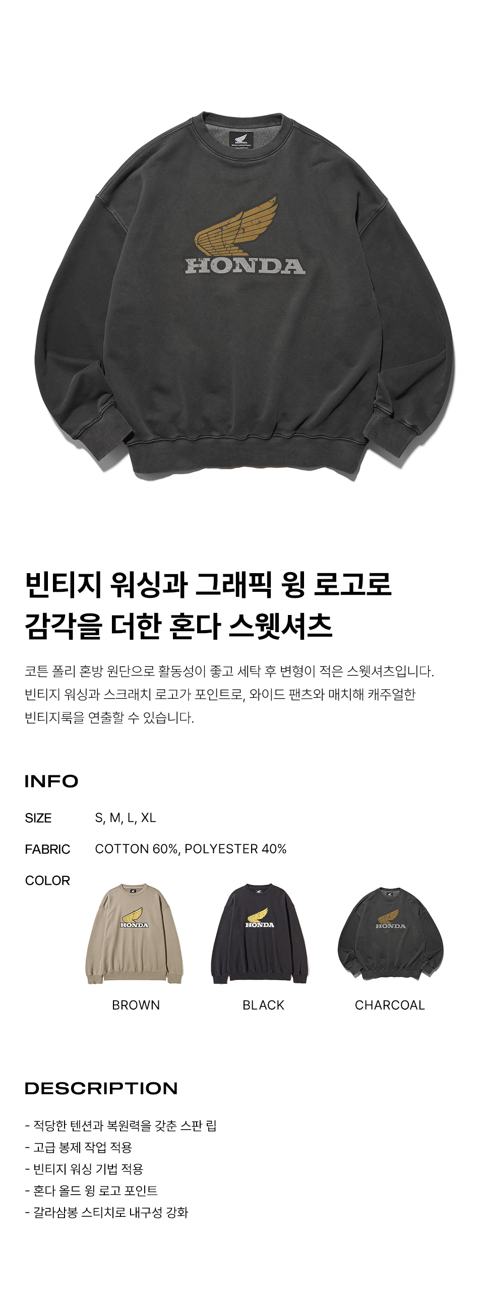 혼다 빈티지 로고 스웨트셔츠 차콜