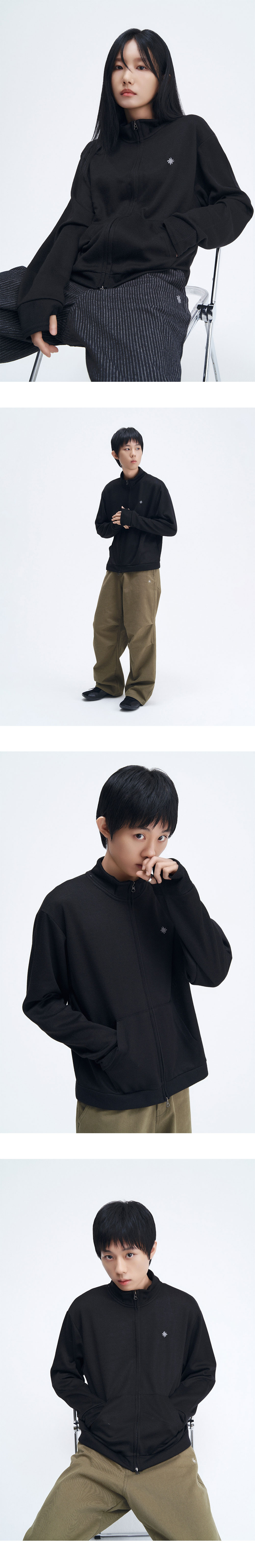 슬로우 레코드 하우스 트랙 집업 가디건 블랙