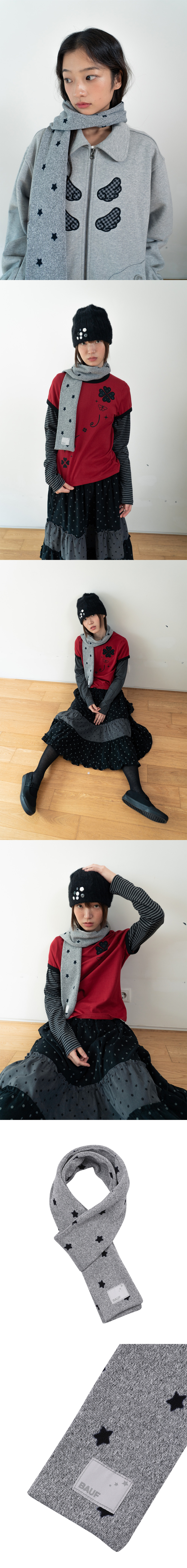 바우프 스타 니트 머플러 그레이