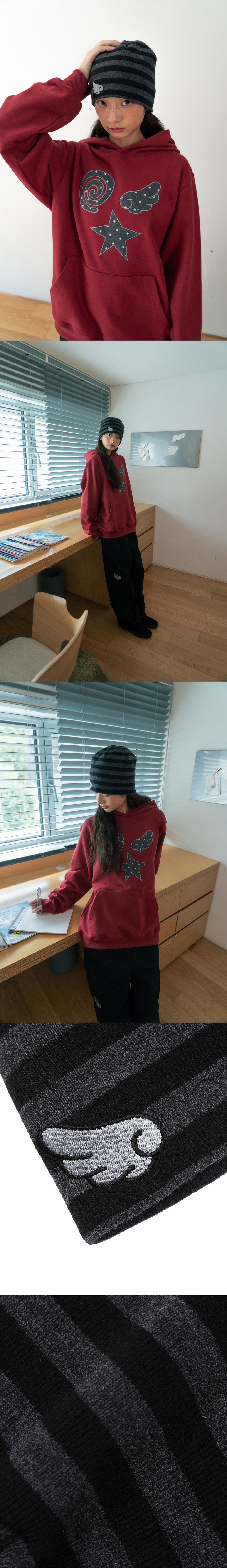 바우프 엔젤 윙 비니 스트라이프 블랙
