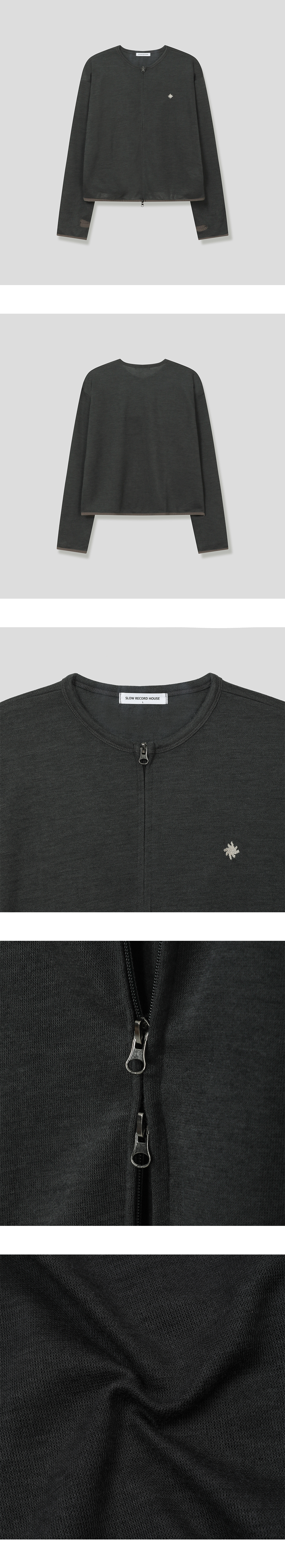슬로우 레코드 하우스 라운드 집업 가디건 카키