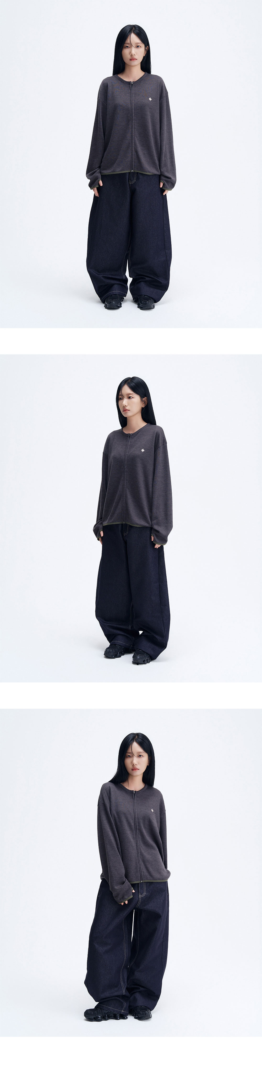SLOW RECORD HOUSE Round Zip-Up Cardigan Khaki