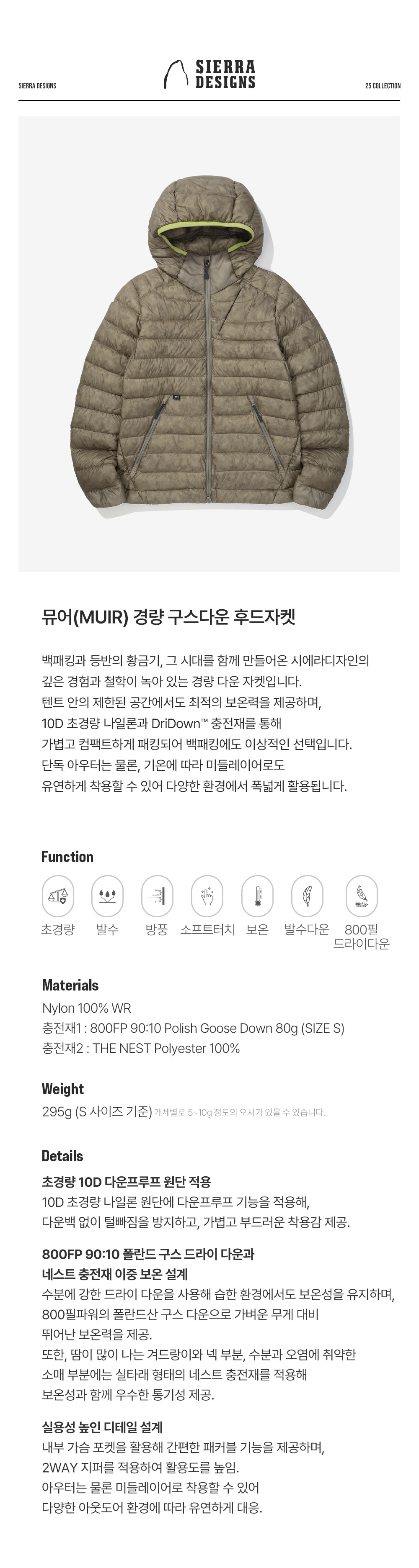 시에라디자인 뮤어 경량 구스다운 후드자켓 브라운